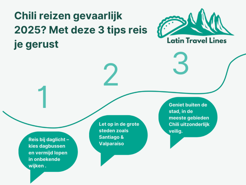 Reis je met mij? Dan hou ik het officiële chili reisadvies in de gaten en pas ik jouw route hierop aan. Door mijn eigen ervaringen kan ik zeggen dat chili reizen gevaarlijk 2025 niet meer is dan een zoekterm, geen dagelijkse realiteit.